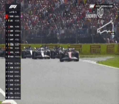 第6圈,角田在四、五号弯的强硬防守给人留下深刻印象!此时诺里斯第一、皮亚斯特里排在第九,若以这个成绩完赛,那么本站结束后诺里斯将超越队友来到车手积分榜第一名。