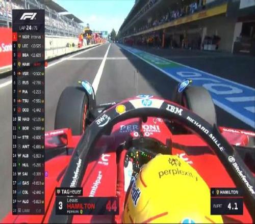 第二十四圈:汉密尔顿进站接受10秒罚时并换上中性胎