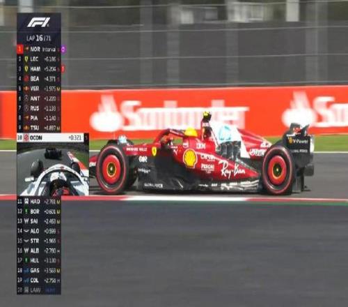第七十圈:塞恩斯的赛车停在赛道内,虚拟安全车出动