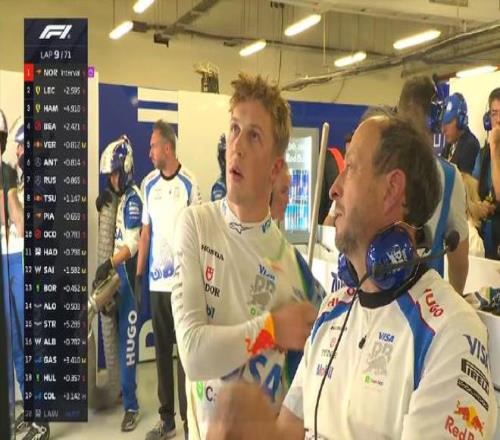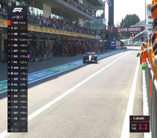 第一圈:首圈后诺里斯顺利领跑,勒克莱尔第二,汉密尔顿第三,维斯塔潘上到P4,皮亚斯特里落到P9